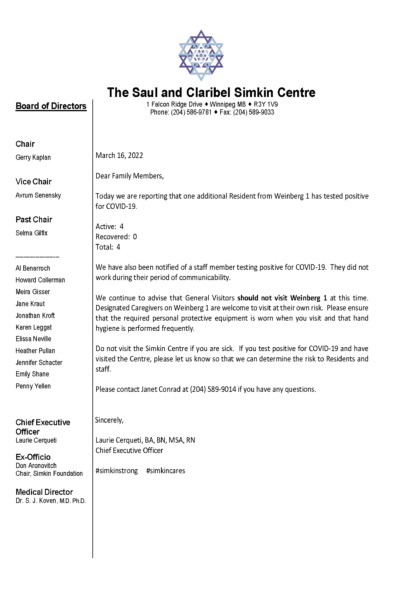 Letter to Families – Update – March 11, 2022