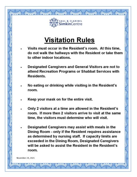 Visitation Rules – November 24, 2021